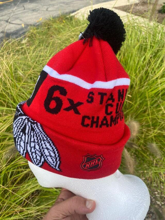 Chicago Blackhawks 6 time Champions NHL Pom Knit Winter Hat