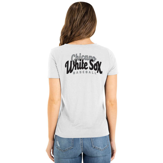 Chicago White Sox New Era Women's V-neck T Shirt - Grey/White